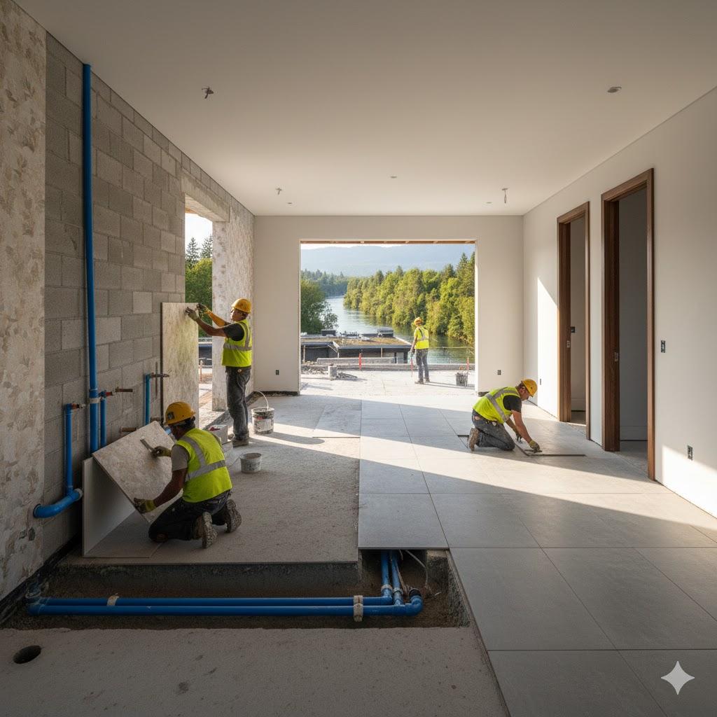 Финишная отделка (оклейка стен обоями, укладка плитки / паркета / мрамора, монтаж декоративных элементов)